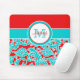 This modern and trendy turquoise blue, red, and white floral damask pattern mousepad has template boxes for you to customise with your own name, initials, monogram, or other text. If you need any help customising this trendy mousepad, please email niteowlstudio@gmail.com.