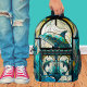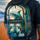 Monogrammed Blue Teal Dolphin Stain Glass look Printed Backpack