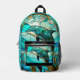 Monogrammed Blue Teal Dolphin Stain Glass look Printed Backpack