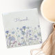 Monogrammed Blue Watercolor Wildflower Meadow Stone Coaster