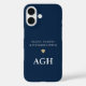 Classy monogrammed monochrome iPhone case in elegant dark blue background and modern white typography for a funny quote, saying. This text is also customisable at your wish. Personalised Initial Letters Monogram in stylish white serif font. And a chic little golden heart to complete the simple minimalist trendy design.Excellent fashionable accessory to protect your cellphone or a great original thoughtful gift idea for her. Very affordable, a unique personalizable gift under 50 dollars.