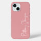 This monogrammed blush pink iphone 15 case is trendy yet and classic. It features your name in a fabulous modern script font in white. It's simple and minimal and professional.