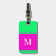 Luggage tag featuring a printed fluorescent neon green and bright pink striped design with your own monogram. An elegant and eye-catching luggage tag to make it easy to find your bag at a busy airport.
