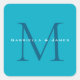Monogrammed Calligraphy Azure Blue Modern Plain Square Sticker
