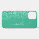 Monogrammed Cell Phone Case Green Script Name in teal and teal glitter, elegantly adorned with your script first name.