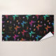 Monogram towel set. Designed with an elegant pattern with a graphic illustration of fluttering butterflies in many bright colours, contrasting very nicely on the black background. Whimsical florals, sprigs and leaves add a bit of charm. A black frame with a gold coloured border layered over top with your personalised monogram initial inside.