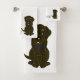 Bath towel set, consisting of a face cloth, hand towel and bath towel with a chocolate Labrador dog design. You can customise this bath towel set with any text of your choice. Should you require any help with customising then contact us through the message link on this page. Labrador dog design bathroom towel set