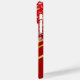 This personalised Christmas phone case features a red and white snowflakes pattern decorated with golden yellow waves. The template makes it easy to type your name to create a unique accessory for a winter holidays season.