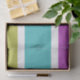 Wrap gifts in colourful style with this monogrammed tissue paper. With a colour block design of wide stripes in pink, green, blue and white, the paper brings a bright boost to your gift wrap supplies.
