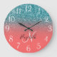 Monogrammed Coral and Teal Glitter Ombre Large Clock
