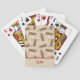 Create a special gift for cribbage fans. These playing cards are ready to be personalised with a monogram or name in bold red letters. They feature a pattern with illustrations of cribbage game boards, playing cards, and game pegs in red, white, blue and tan set against a light tan background.