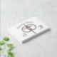 Design front features the image of a cross & rings intertwined together; a symbol of how Christ is at the centre of a marriage. Customisable phrase is displayed above as an arch. Initials of Bride and Groom are displayed on either side. Customisable text is also featured on spine and back. Designed to coordinate with the "Traditional Catholic Monogrammed Wedding Suite."