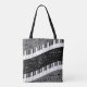 Contemporary curved piano keys and grey and black musical notes with contrasting black and grey panels