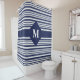 Monogrammed Dark Blue and White Stripes Shower Curtain