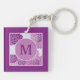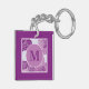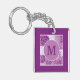Monogrammed Dark Purple Floral Pattern Key Ring
