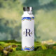 Monogrammed Elegant Blue Agate Marble Pattern Water Bottle