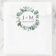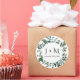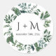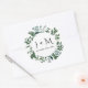 Round envelope seal with your initials and wedding date are perfect to seal envelopes for wedding invitations and bridal shower parties.  Hand Watercolored forest leaf foliage in varying shades of emerald hunter green by artist, Audrey Jeanne Roberts.  Copyright.