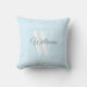 Family name and initial throw pillow. Available in two different colors, materials, and sizes.