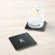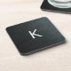 Elegant faux black leather design with monogram cork coaster.