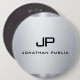 Monogrammed Faux Silver Metallic Look Template Elegant Modern Colossal Round Button.