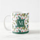 Monogrammed, Festive Greenery and Holly Green Red Coffee Mug
