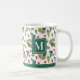 Customise this beautiful mug with your own initial and make it your own! Beautiful festive greenery and holly pattern with green elegant monogram section on centre with your initial in white. Green decorative stripe at the bottom. Great unique custom holiday gift! Collection with coordinating collection available.