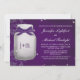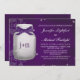 A gorgeous purple and plum hued firefly mason jar couples wedding shower invitation that looks like it glows. Add the initials and or monogram of the bride and groom to the jar with a deep purple and white printed ribbon look design. A subtle vintage damask antique lace border compliments this rustic yet elegant design with enchanting fireflies inside and outside of the jar. These invites are beautiful for a nighttime, barnyard, farmhouse or country themed shower or engagement party. Artwork © Chrissy H. Studios, LLC. All Rights Reserved.