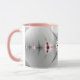 This modern girly mug features an abstract symmetrical fractal art in pink and silver (grey) gradient. Personalise it with a monogram in a matching pink colour.