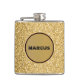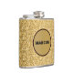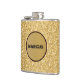 The flask itself is fine. It’s a cheap flask, obviously bought in bulk, however am prepared to overlook that. Given that it is a personalized item, I would have liked to have seen gift boxing instead of the generic packaging. Terrible printing, and/or quality. It’s a cheap, tacky vinyl. It is not cut straight and is also applied in a way that it is overhanging the bottom, causing the glue to catch on items and it will eventually roll and tear, damaging the wrap.