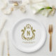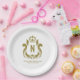 N monogrammed gold crest paper plates, change the name yourself when you order. We have a full collection showing each letter of the alphabet.