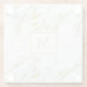 Monogrammed Gold Glitter Over White Marble Glass Coaster