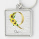 Monogrammed Gold Sunflower Floral Initial Q Key Ring