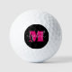 Stylish monogram initial and your first name in chic pink and white lettering on black are featured on this feminine golf ball. MORE items in our store.