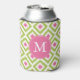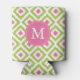 Monogrammed Green and Pink Diamonds Pattern Can Cooler