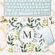 Monogrammed Green Eucalyptus Tropical Leaves Mouse Pad
