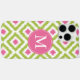 Monogrammed Green Pink Diamond Ikat Pattern Case-Mate iPhone Case