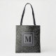 Monogrammed Grey and Black William Morris Foliage Tote Bag