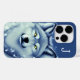 Wolf lovers iPhone case done in blue, with ai cartoon graphics of a grey and white wolf's portrait. Personalise the one letter monogram to suit your needs.