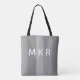 monogrammed vintage grayscale fat stripes all over print tote bag