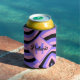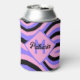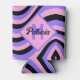 Monogrammed Groovy pink & purple psychedelic black Can Cooler
