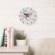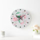 Monogrammed Hummingbird Pink Mint Floral DECOR Large Clock
