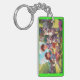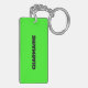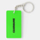 Cute Husky puppies playing with two children with monogrammed name on each side in black on a green background. Acrylic keychain.