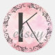 Monogrammed Initial Black and PInk Letter Sticker with pretty pink hearts background.
