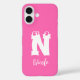 Modern funny hot pink magenta and white monogram and name personalised iPhone case featuring a whimsical fun typography. Suitable for teens and young adults as a birthday or a Christmas gift.