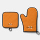 Monogrammed Initial Name Orange Oven Mitt & Pot Holder Set