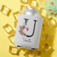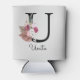 Monogrammed Initial U Pink Boho Girly Floral Can Cooler