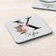 Monogrammed Initial x Pink Boho Girly Floral coaster, perfect gift for a bachelorette party or other fun girly celebration. Customised with monogrammed the letter X and a name.