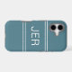 Stylish custom design features up to three bold letter initials in a shadowed white font on a contemporary turquoise green background. Background is divided into thirds by two matching stripes above and below the initials. Simple to use modern template allows for easy personalisation. E-mail beachpausedesigns@gmail.com or use the message link in this listing with questions or custom colour requests.