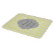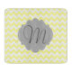 A light yellow and white chevron background with grey badge and customisable charcoal grey monogram. Trendy colours and patterns make a great way to personalise your world in style!