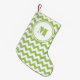 Monogrammed Lime Green White Striped Chevron Small Christmas Stocking